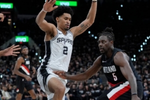 马刺赢下首战,是靠文班开场吓得开拓者禁区11中4,靠文班的35分——对克林根一分半10分,对罗威二分钟11分,还逼到俩人狂投三分。