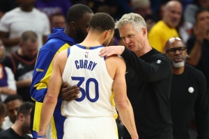 记者:“当你和库里以及科尔在比赛结束后拥抱在一起的时候,那一刻你的情绪是怎样的?”