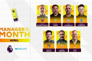 24直播网4月30日讯 英超官方公布了4月最佳主帅的7人候选名单,瓜迪奥拉、斯洛特是唯二3战全胜的主教练: