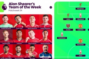 24直播网4月28日讯 英超第34轮战罢,阿兰·希勒评选了本轮最佳阵容,卡塞米罗、B费在列,诺丁汉森林5人入选。