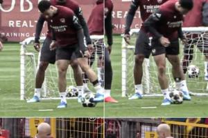24直播网04月29日讯 马丁内利在训练中做出安东尼同款转圈动作。