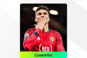 24直播网4月29日讯 英超官方宣布,曼联中场卡塞米罗当选英超第34轮最佳球员。